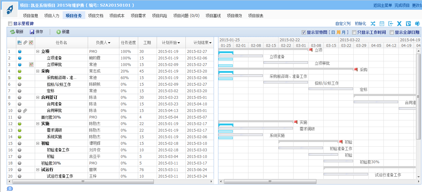 6、支持供应商和合同管理,通过合同与项目阶段任务的关联,确保项目实施进度和合同付款计划保持一致。