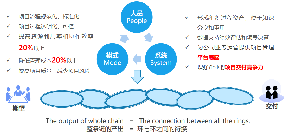 ➣ 项目全生命周期流程落地的强大工具,确定项目标准规范、固化流程、建立模板