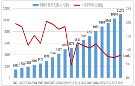 据统计,2017年中国军费首次突破万亿,以7%保守增速计,到2025年国防军费开支有望达到1.8万亿元,其中,武器装备大约占总费用的1/3左右。