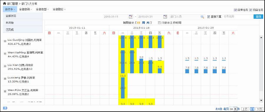 远程办公最担心的是工作效率的下降,iMIS-PM人力资源模块为项目经理和各级职能经理提供可视化页面,直观展示人力资源的工作负荷、利用率和时间分布图。完成相同一项工作,通过对(云)比(监)历(工)史工时,我可以客观地觉得你没偷懒!