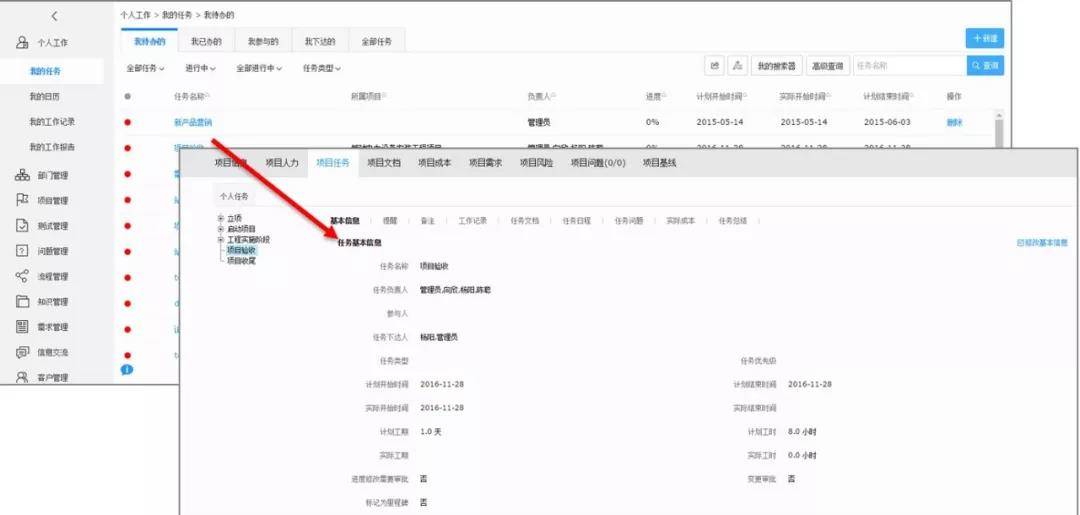 ●任务工作记录:在项目任务中均可查看到关联的工作记录,并可直接在任务中填写相关工作记录。