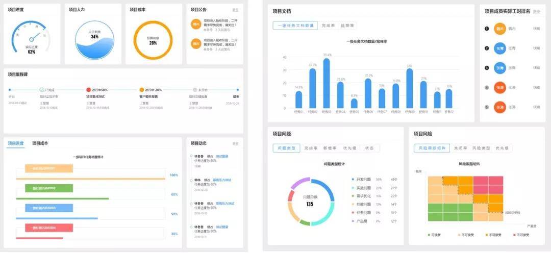 3)可视化界面总览项目全局,数据统计报表辅助决策。