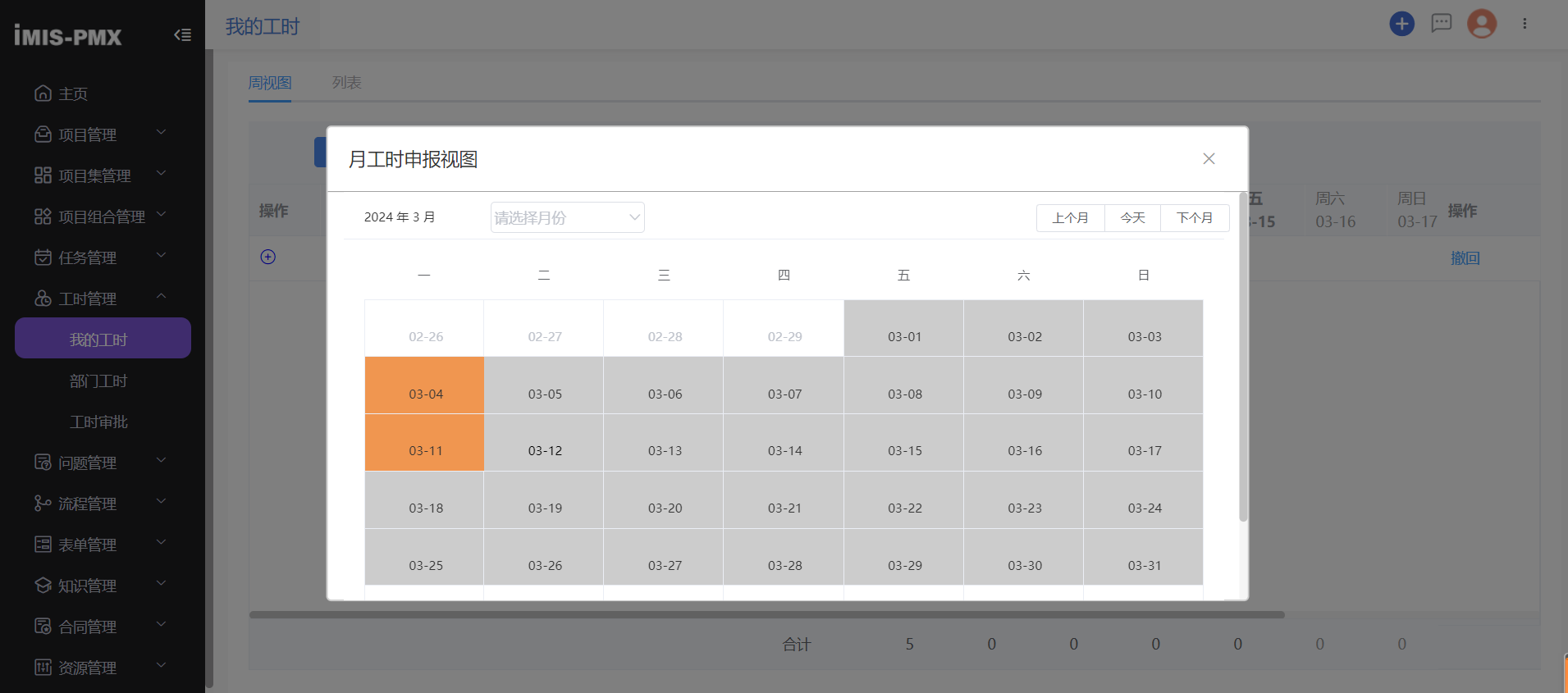2.多维度工时统计与分析:捷为iMIS-PMX支持按部门、项目、人员等多个维度进行工时统计和分析,帮助管理者全面掌握项目的工时消耗情况。