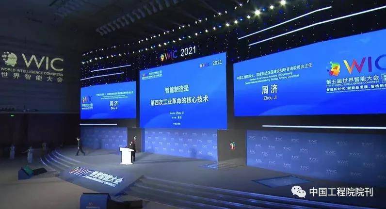 2021年5月20日,中国工程院院刊《Engineering》主编、中国工程院院士、国家制造强国建设战略咨询委员会主任周济,在天津召开的第五届世界智能大会上,发表了题为《智能制造是第四次工业革命的核心技术》的主题演讲。本届大会主题为“智能新时代:赋能新发展、智构新格局”,全景展现了目前我国人工智能和智能制造领域的创新成果。